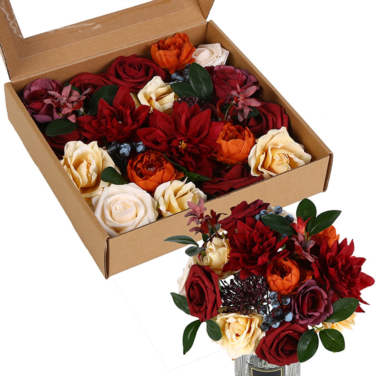 Growment Artificial Flower Box Wedding Party Birthday Fake Flower Gift Box Diy Home Bouquet Flower Head With Rod C Walmart Com